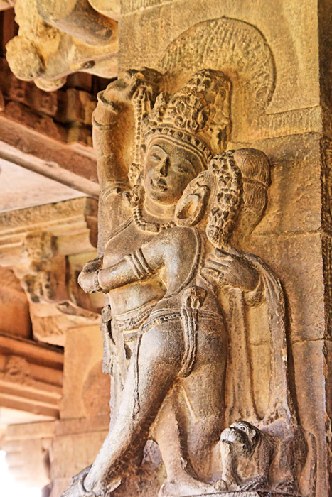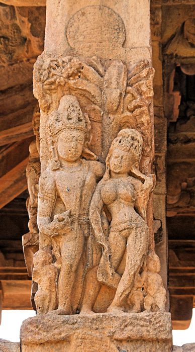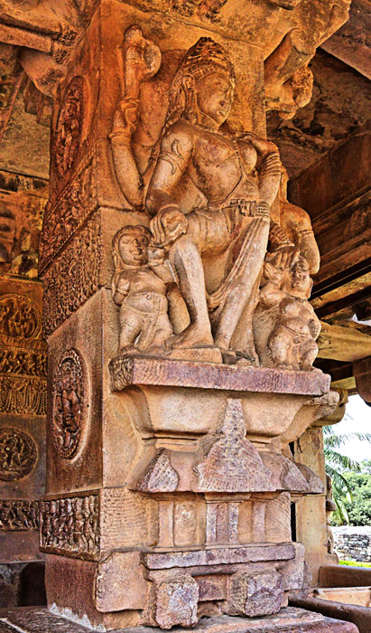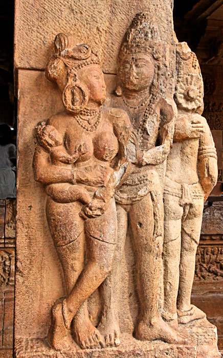 Couple avec un enfant sculpté sur un pilier extérieur sud.