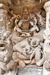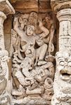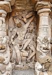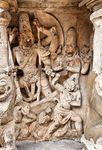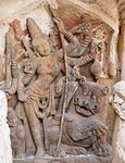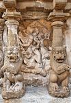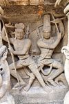 Cette partie de l'enceinte est plutôt consacrée aux aspects guerriers de Shiva et aux combats. Sur 21 chapelles de ce côté, 10 sont consacrées à des combats. D'autres représentations montrent des formes guerrières, même si elles ne sont pas en train de combattre, comme Durga. Cette succession d'images évoquent la série canonique des 8 exploits décrits dans les ouvrages tamouls. (Edith Parlier-Renault, 2006).