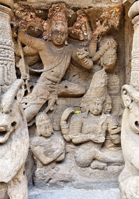 Cette image illustre un épisode fondamental de la mythologie de Shiva dont elle semble être l'unique représentation. Shiva vient de couper la 5ème tête de Brahma qu'il tient dans sa main. Cet action fait suite au récit de la naissance du linga. Comme Brahma refuse de reconnaîte la suprématie de Shiva, celui-ci lui coupe la 5ème tête qui était tournée vers les cieux. Cette 5ème tête représente la transcendance divine et seul Shiva, qui posséde aussi 5 têtes, revendique ce lien exclusif.