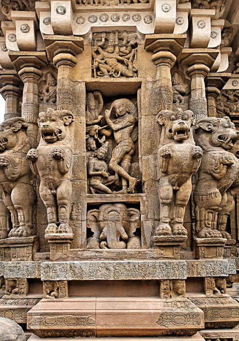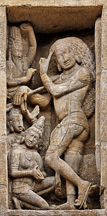 Sur le mur du sanctuaire, la niche où est représenté Bkiksatana est surmontée d'une petite niche où Shiva exécute la danse Vrscika, nom d'une posture de jambes ("le scorpion") où la jambe est lancée en arrière pour évoquer la queue du scorpion. (E. Parlier- Renault, 2006). D'autres représentations de Bhiksatana se trouvent autour du sanctuaire et dans l'enceinte.