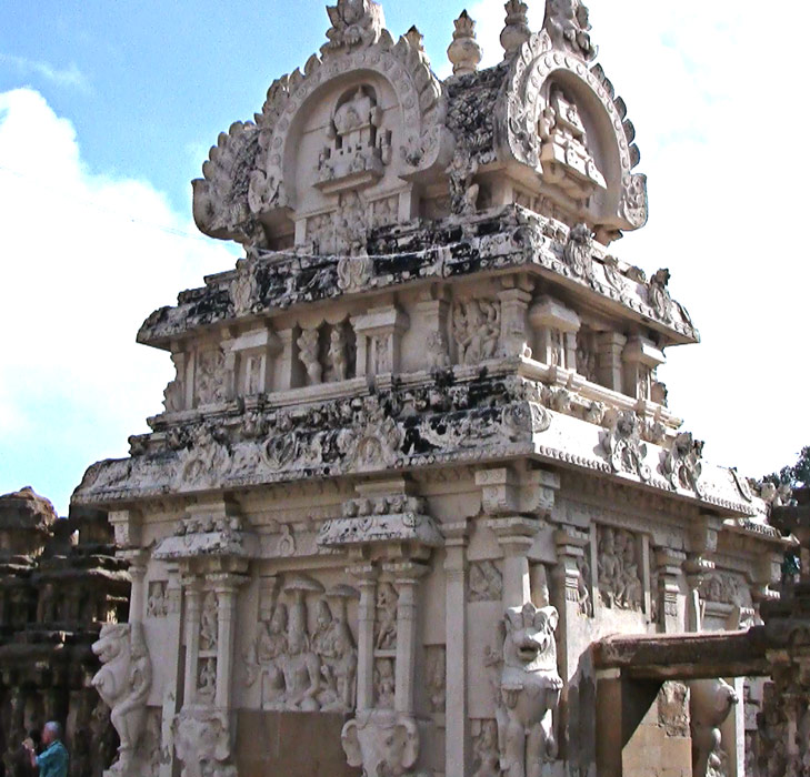 Il ne s'agit pas en fait d'un véritable gopuram, mais d'une structure haute sur un petit temple construit à l'entrée qui est dû à Mahendravarman II, fils d Rajasimha qui a régné aux côtés de son père sans lui succéder (A.M. Loth, 2006). Il est surmontée d'une tour très ouvragée, que l'on peut considérer comme l'ancêtre des gopurams.